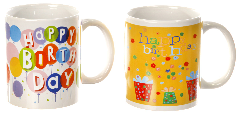 Kaffetasse/Becher "Happy Birthday" 2/s 9,5cm Steinzeug, 350ml, Balloons und Geschenke sortiert 11,5x9,5x8cm