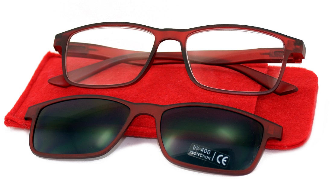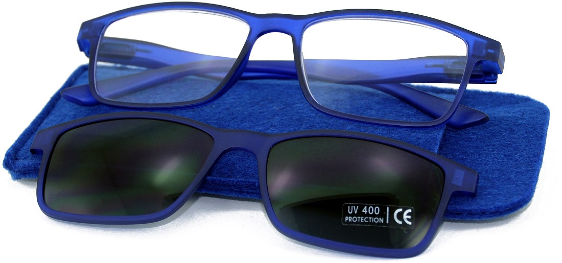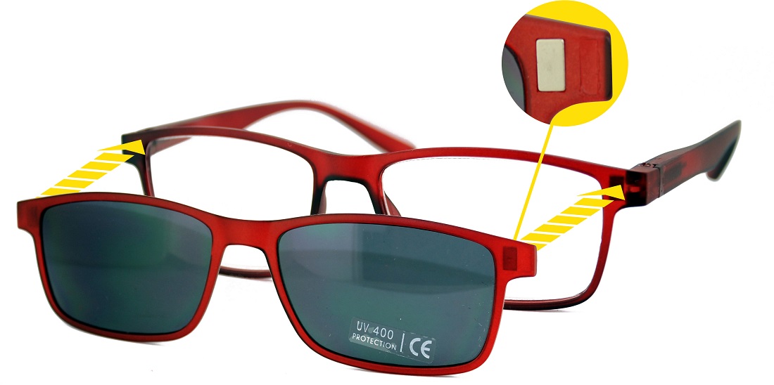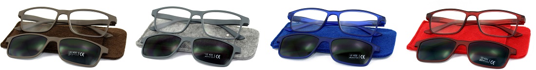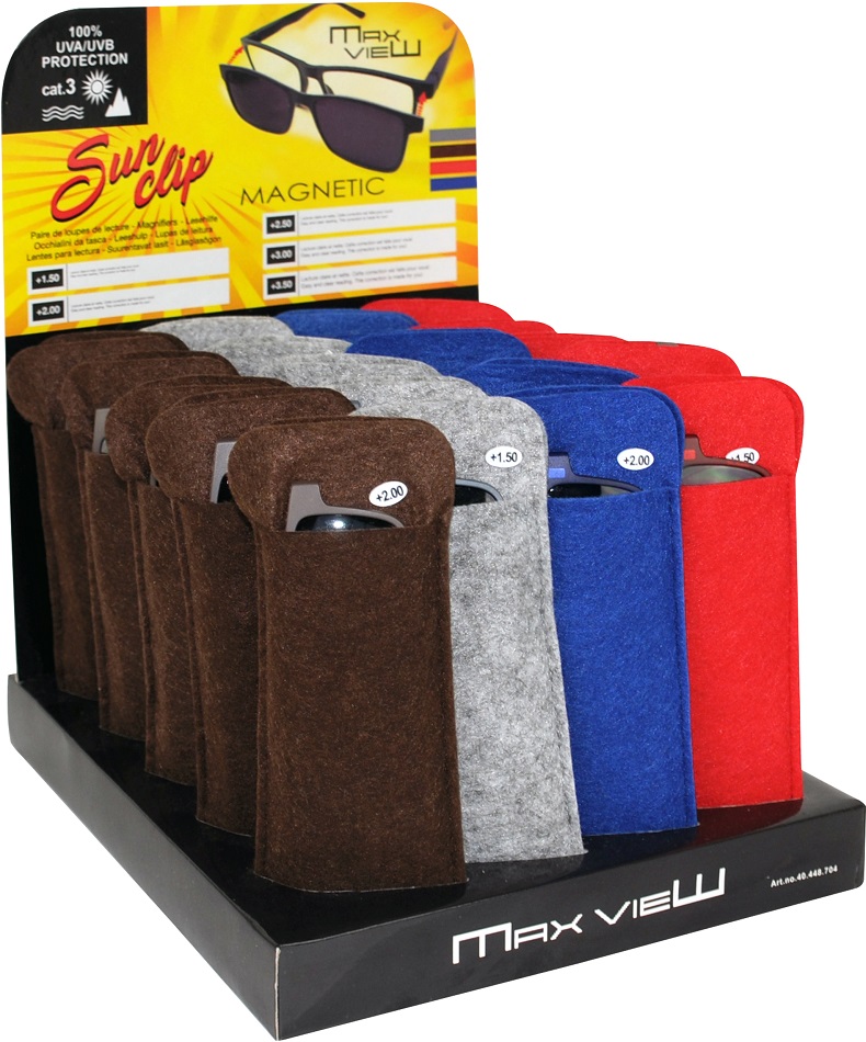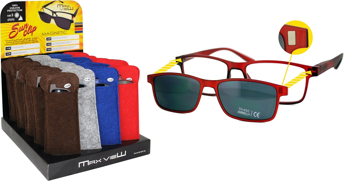 Lesehilfe Lesebrille Unisex mit Magnetischem SUNCLIP & Filstasche 4/s (Braun, Grau, Blau, Rot) in 20er T-Dsp.