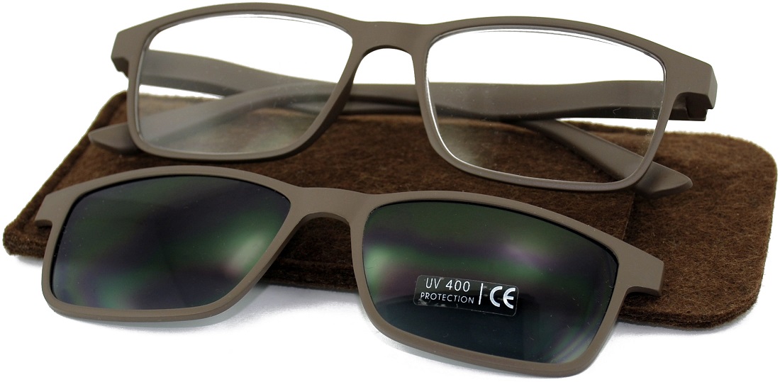 Lesehilfe Lesebrille Unisex mit Magnetischem SUNCLIP & Filstasche 4/s (Braun, Gr