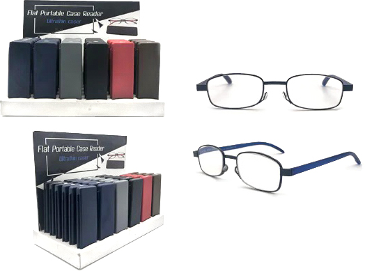Lesehilfe Metallgestell Dioptrien = +1, +1,5, +2, +2,5, +3 mit Hardcase 4/s (Blau, Schwarz, Braun und Silber) in 36er T-Dsp.