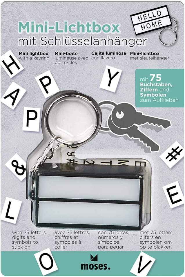 Mini-Lichtbox Schlüsselanhänger inkl. 75 Buchstaben, Ziffern und Symbolen im 12e