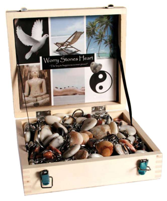 Schlüsselanhänger, Herzen-Natursteine, ca. 3 cm, mehrfarbig sort., 90 in Holzkiste