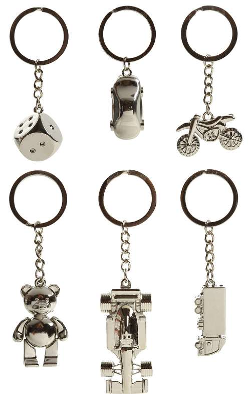VE:72 Schlüsselanhänger Metall "3D" 6-fach sort. Inkls. Ständer