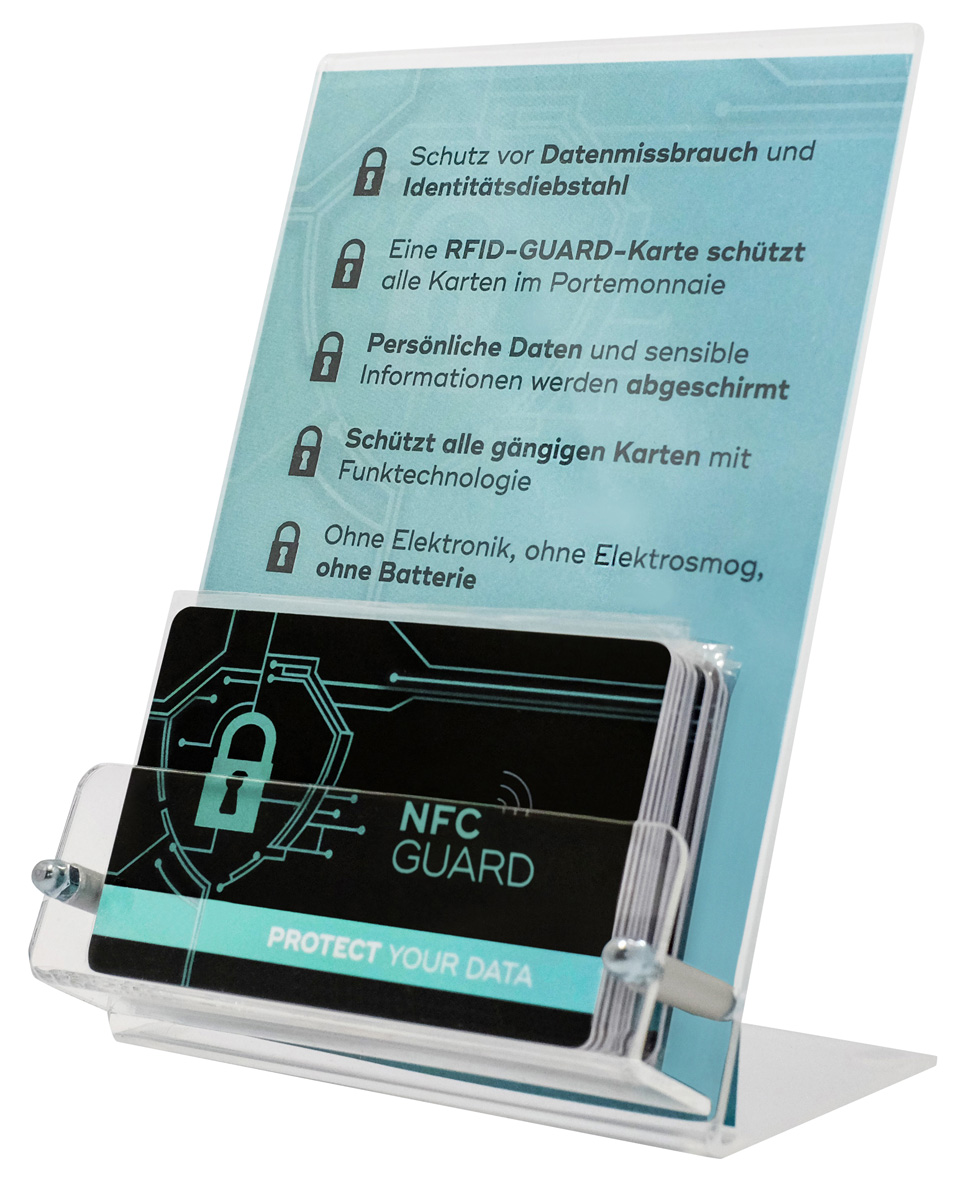 Acryl Ständer für NFC GUARD Blocker-Karten ohne inhalt.
