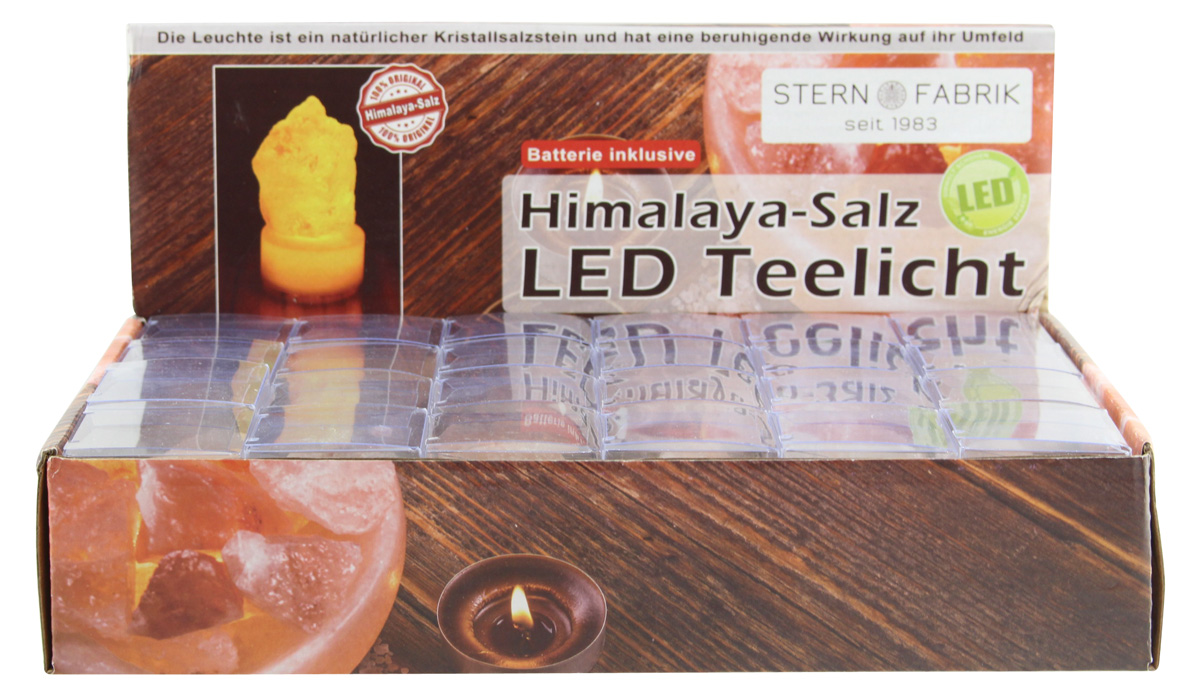 LED Teelicht Himalaya aus echtem Himalaya-Salz in PVC Box 24er Dsp.(inkls. Batt.