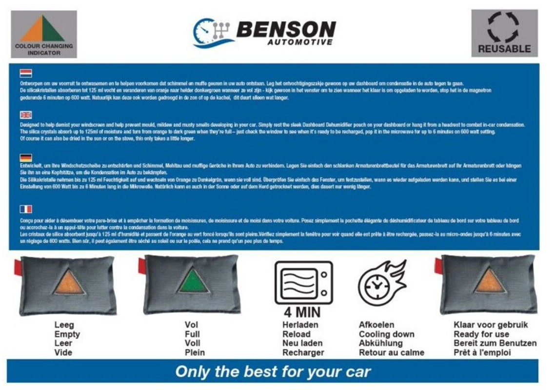 Auto-Entfeuchter Silikatkristalle Wiederverwendbar mit Feuchtigkeitsabsorber u. Farbanzeige: Orange = leer / Dunkelgrün = voll
