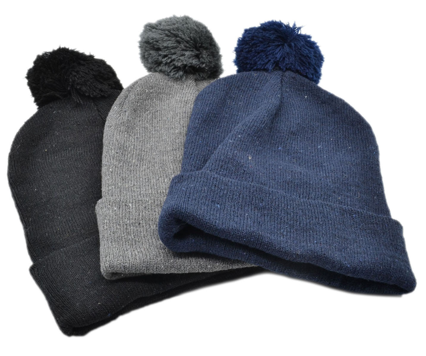 Wintermütze Basic mit Bommel, 3/f schwarz, grau, navy Material: Polyester mit Ha