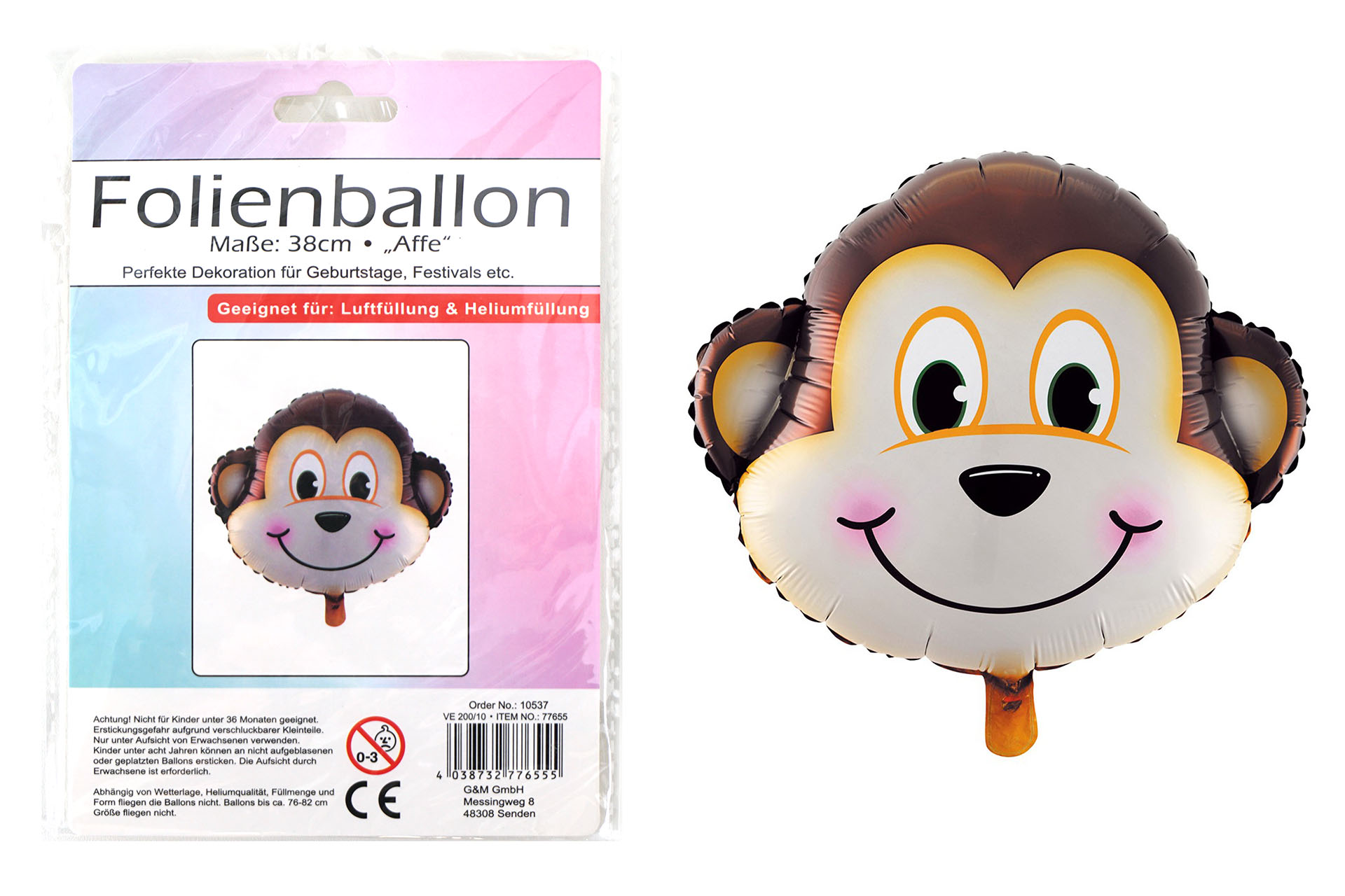 Folienballon "Affe" ca. 38cm befüllbar mit Helium/Luft in Polybag mit Einleger