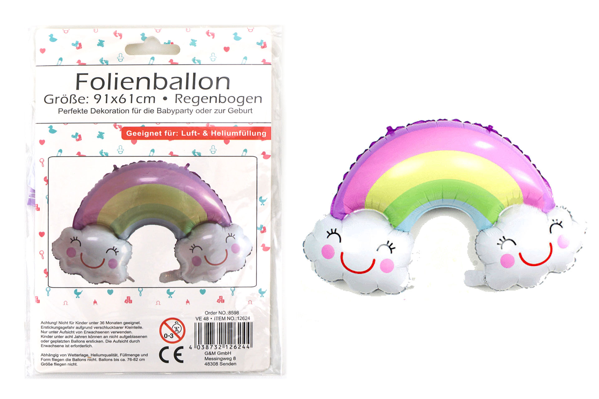 Folienballon "Regenbogen" ca. 90cm befüllbar mit Helium/Luft in Polybag mit Einleger