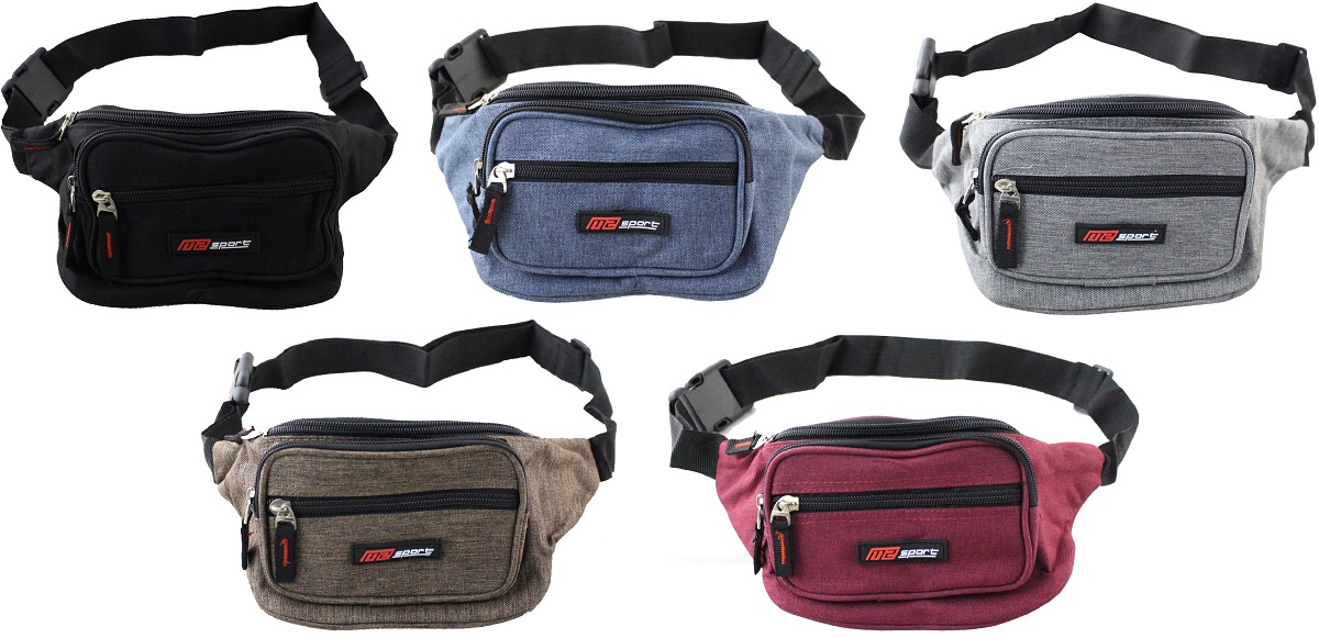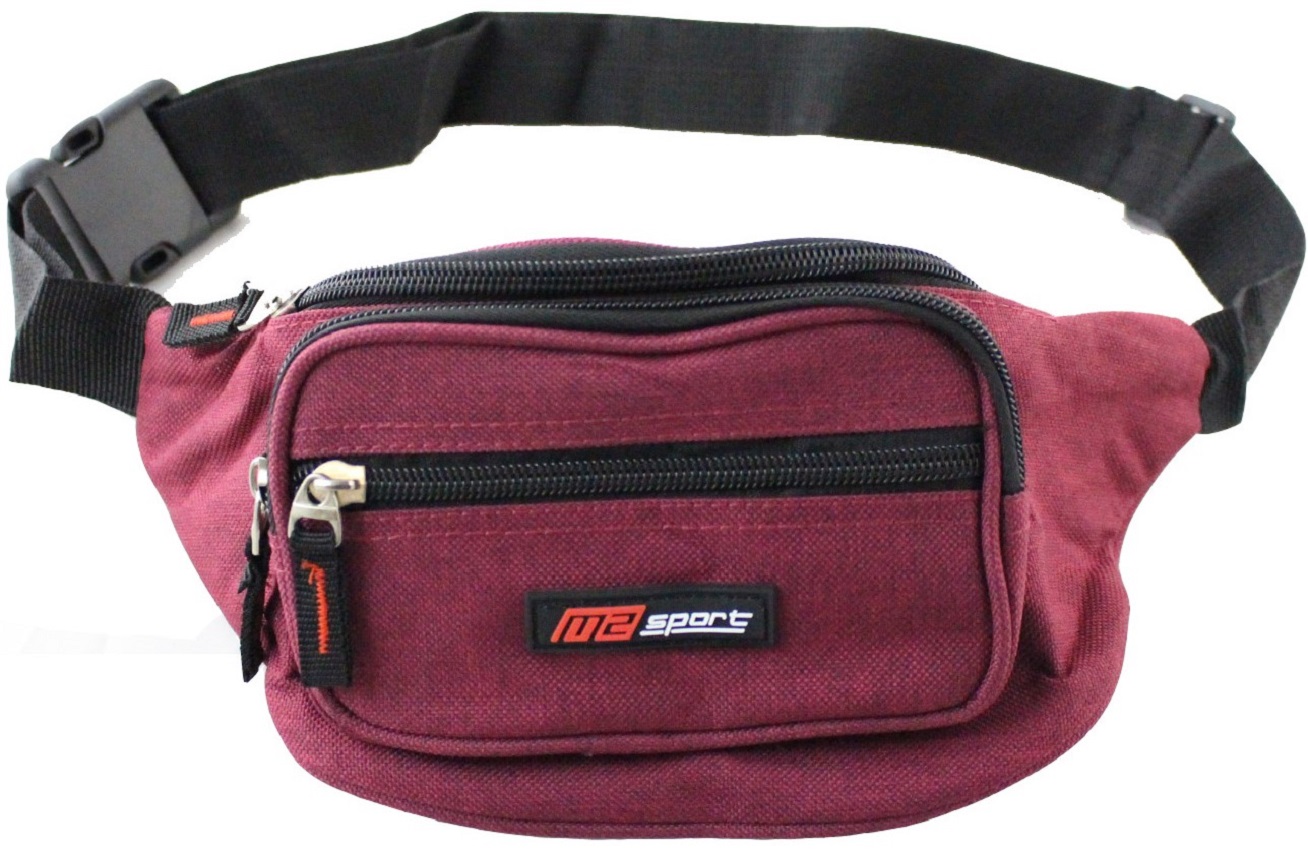 Bauchtasche aus Stoff in versch. Farben ca. 26 x 12 x 7,5cm mit 3 Fächern (Bordeaux, Braun, Grau, Blau, Schwarz)