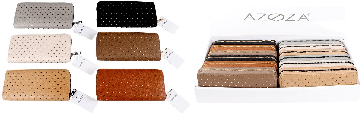 Damen-Börse mit Nieten 6/s in 12er T-Dsp. (grau, schwarz, rosa, mokka, beige, braun)