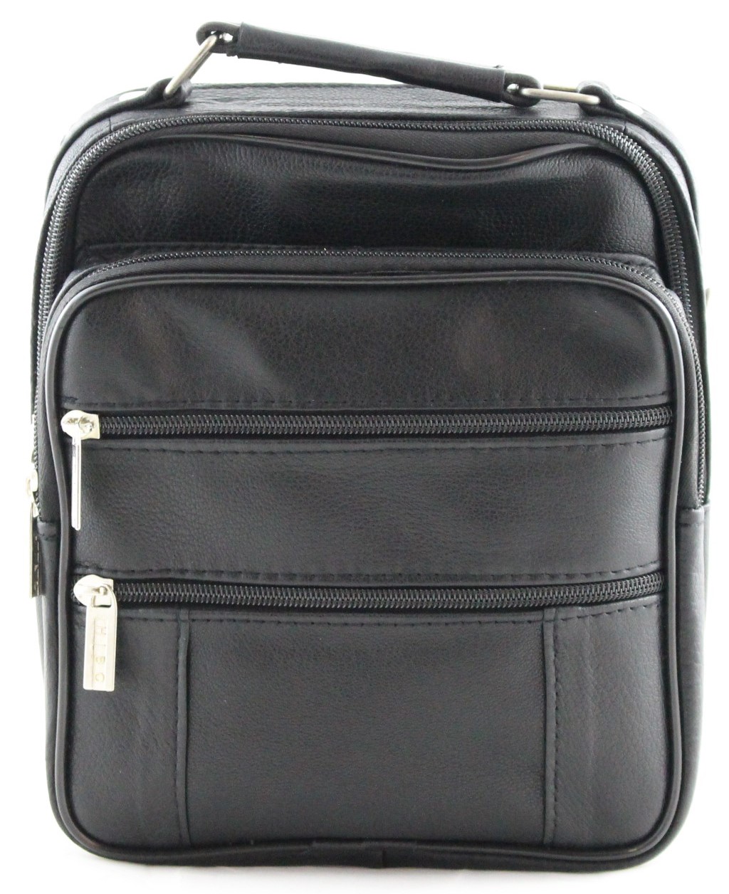 Schultertasche Umhängetasche aus hochwertigem schwarzem Ledern (ca. 23,5 x 20,5