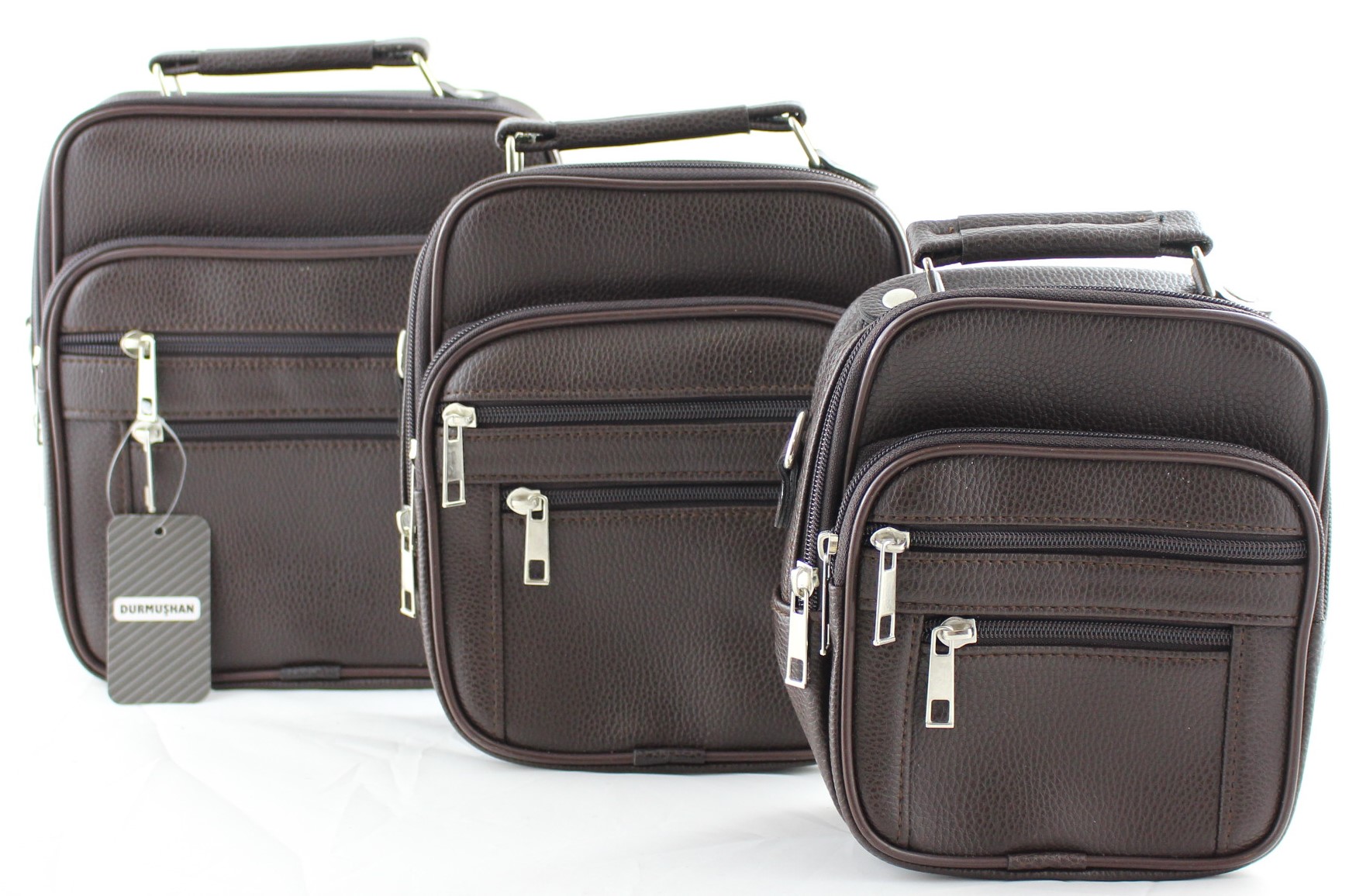 Umhängetasche aus dunkel braunem Kunstleder 3 tlg.