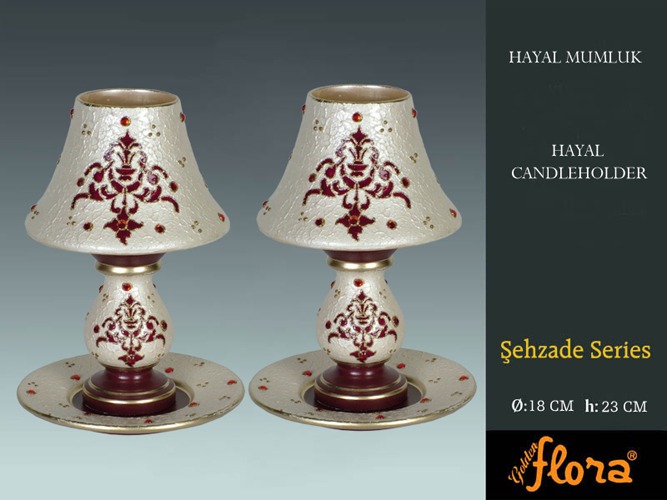 Kerzenhalter HAYAL aus der Sehzade Serie in Weiß mit roten Akzenten ca. 23cm