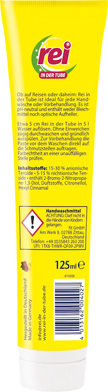 Rei Handwaschmittel in der Tube, pH-neutral, á 125ml für die Reise & daheim, ideal für jede Handwäsche oder Vorbehandlung, enthält keine Blecihmittel oder optische Aufheller