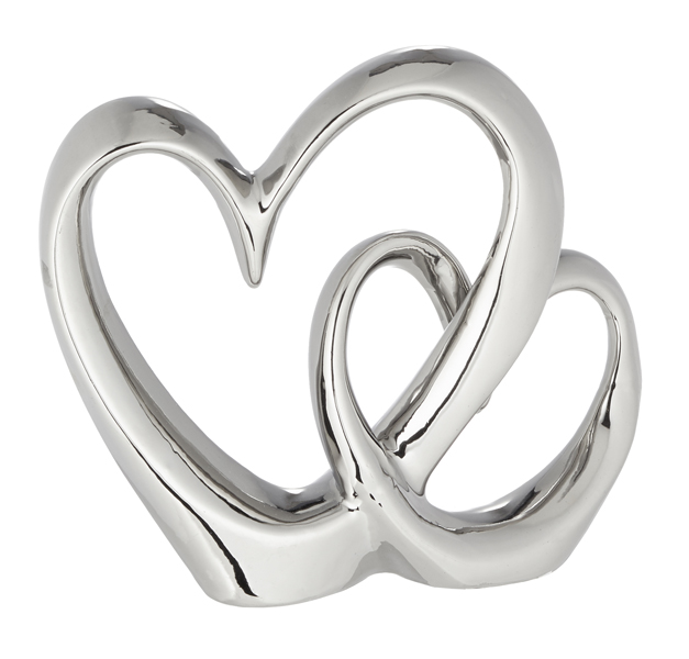 Doppel Herz Silber Steingut B:19cm H:16,5cm T:7cm