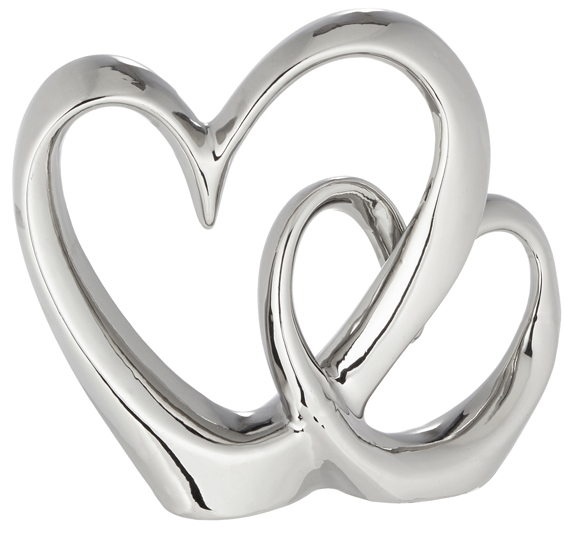 Doppel Herz Silber Steingut B:27cm H:22,5cm T:8cm