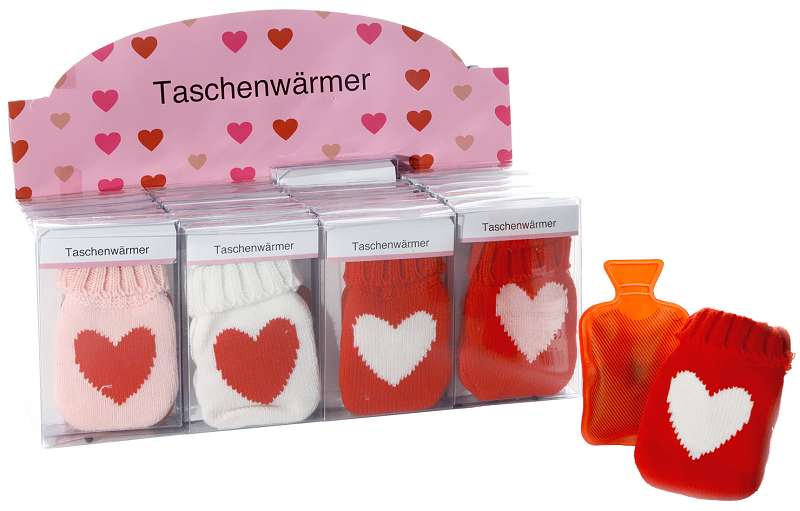 Handwärmer Taschenwärmern mit Hülle "Herz" 4-farbig sort.ca.7,5x12,5cm im Dsp