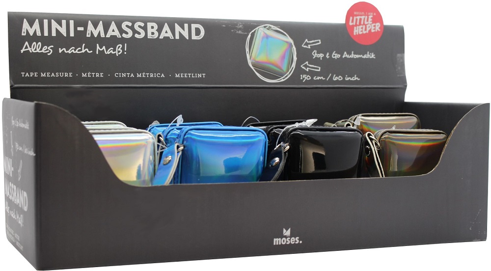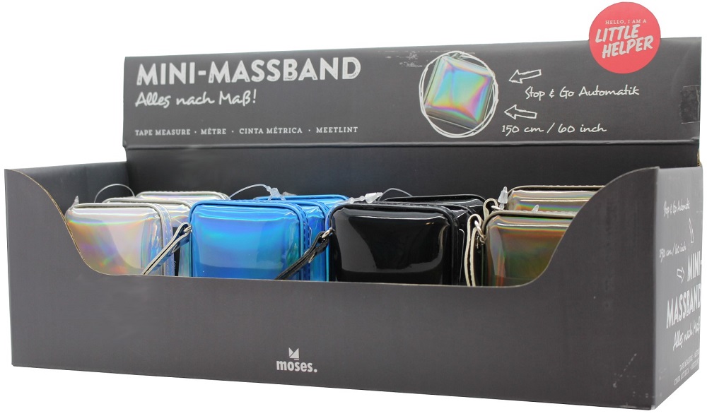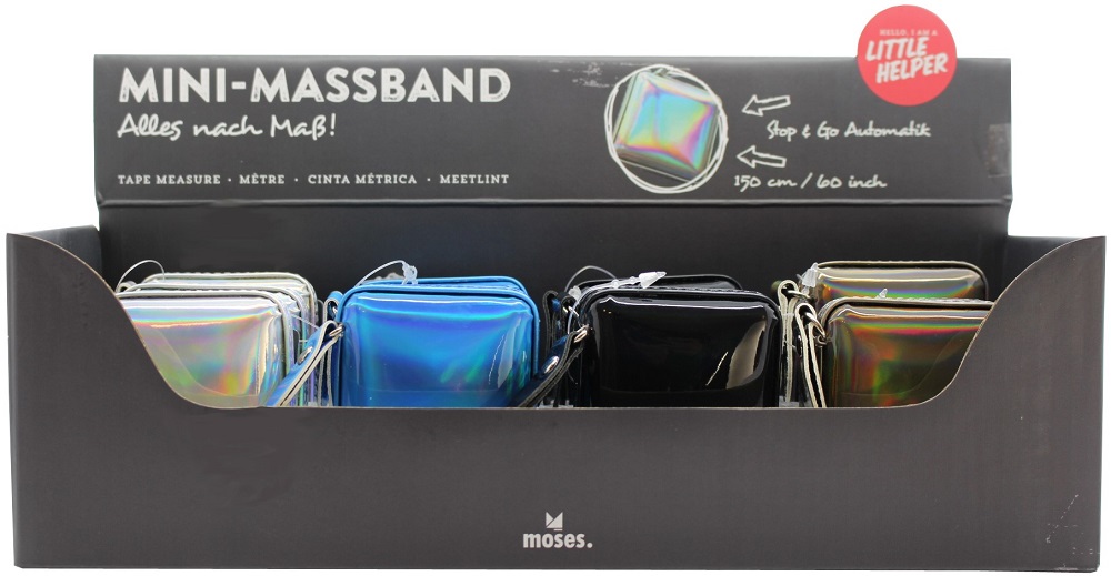 Mini Maßband Little Helper 150cm im 12er T-Dsp. 4/s (blau, braun, schwarz, silbe