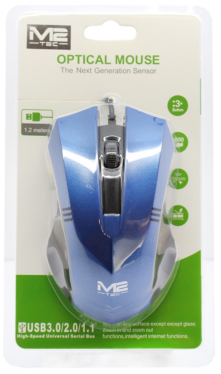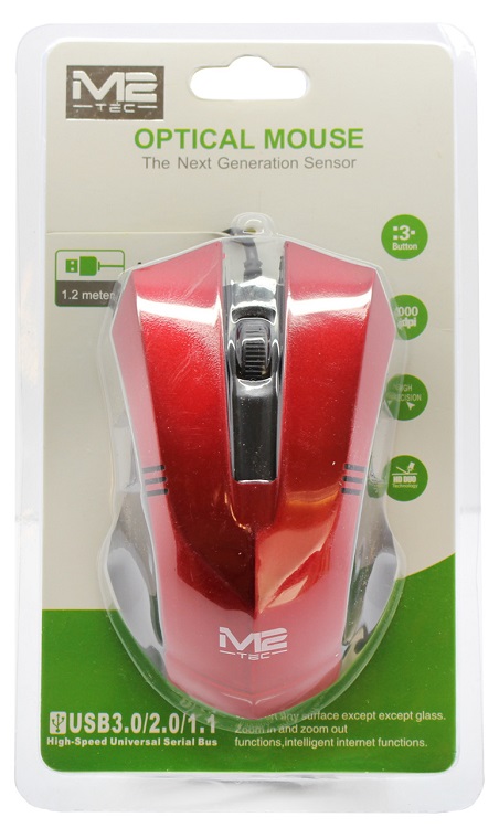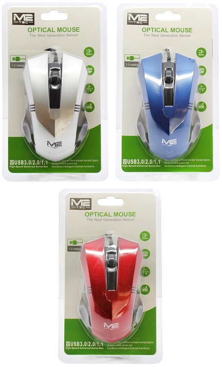 PC Maus "Optical Mouse" mit USB 3.0/2.0, 100dpi 1,2m Kabel 3/s (rot, blau, silbe