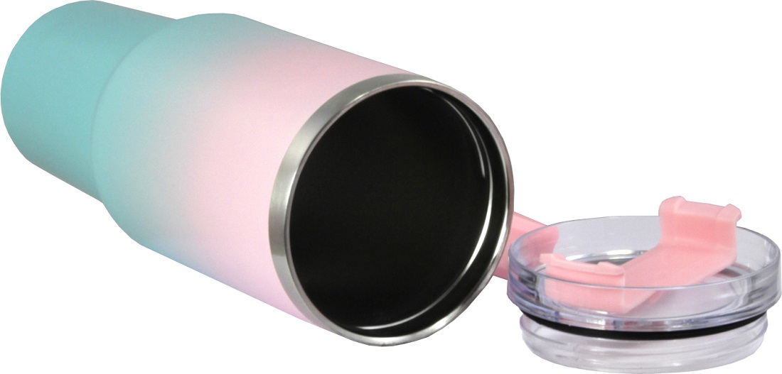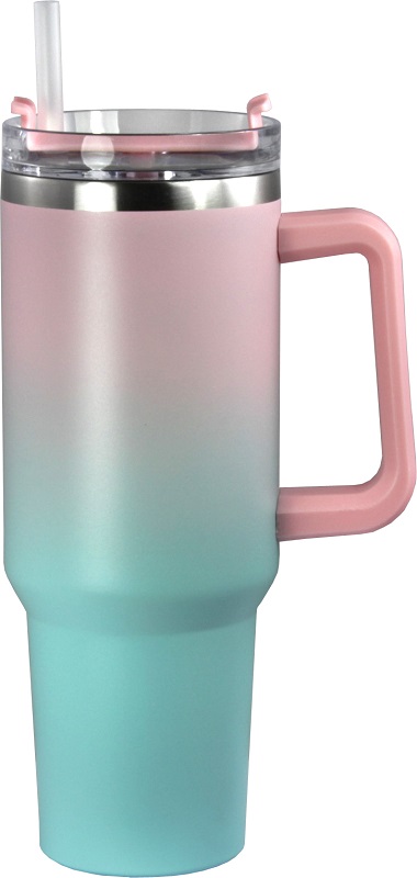 Thermobecher To-Go Rosa / Türkis verlaufend inkl. Strohhalm 1182ml Füllmenge ca. 28 x 10cm; Material: ss304(innen) + ss201(außen)