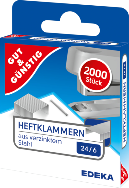 Heftklammern G&G aus verzinktem Stahl 24/6mm Silber 2000 Stk. in Faltschachtel