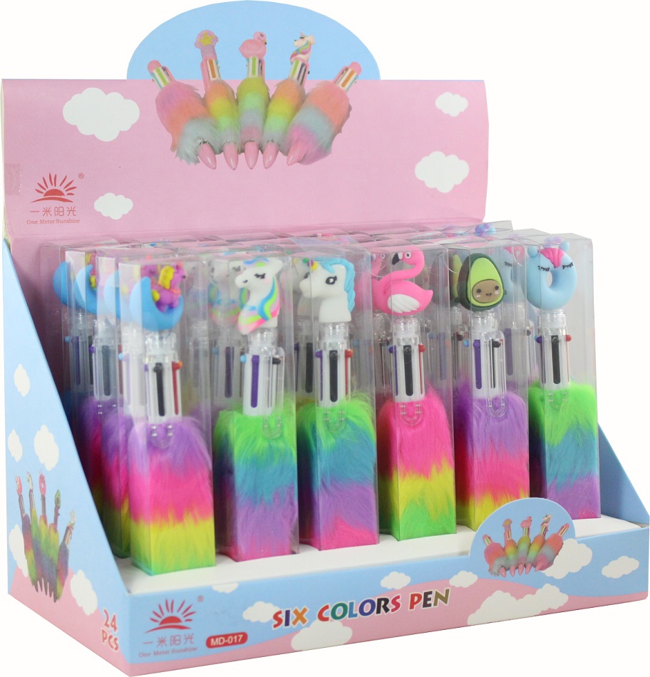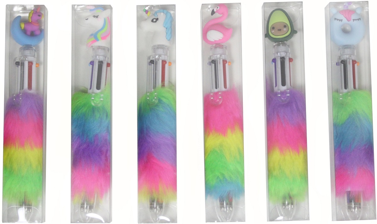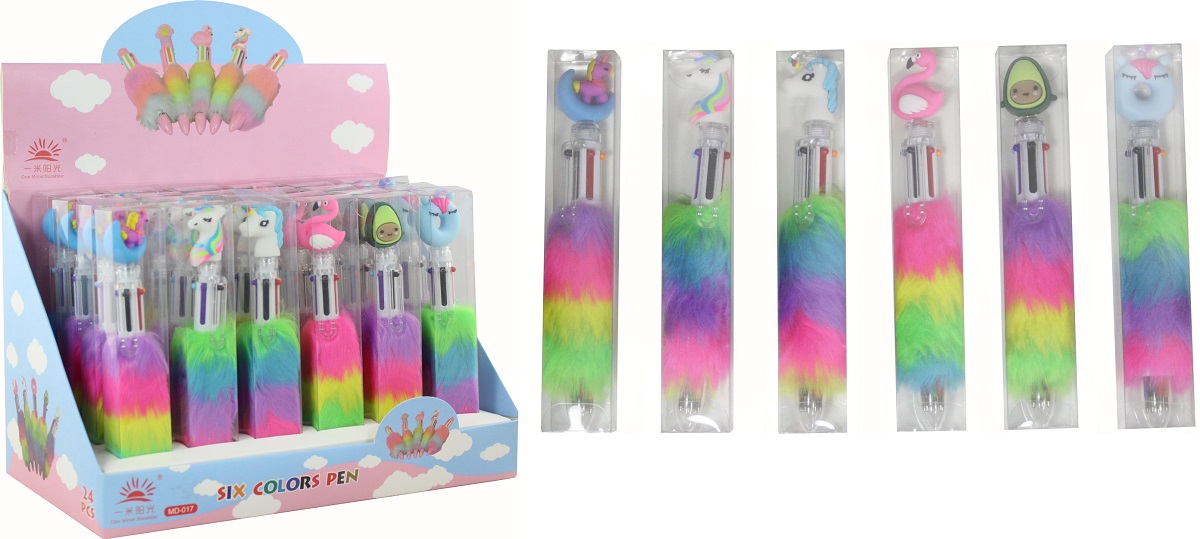 Rainbow Kugelschreiber mehrfarbig mit Plüsch Griff und süßen Figuren in 24er T-D