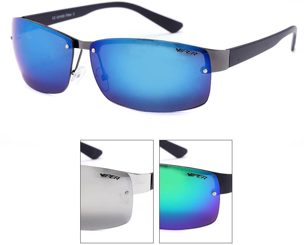Sonnenbrille Viper Designbrille Halbrand-Gestell Herren 3/s (Blau/Sschwarz, Silber/Schwarz, Lila/Schwarz)