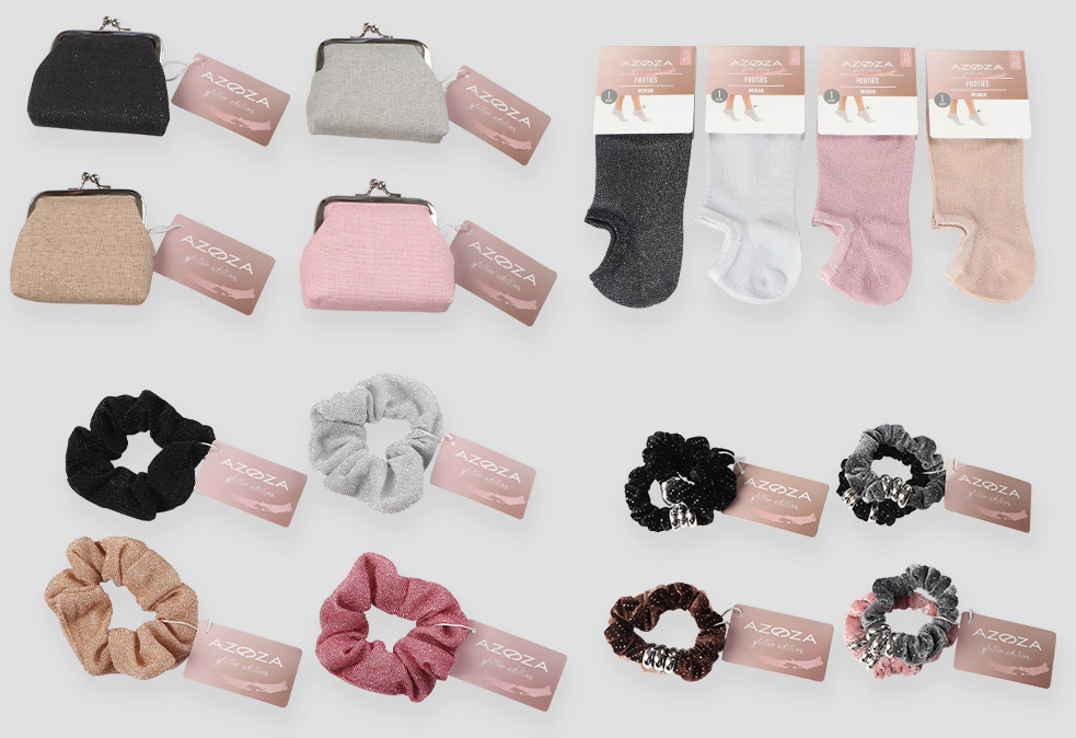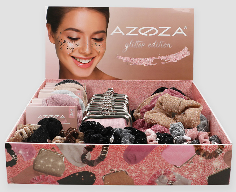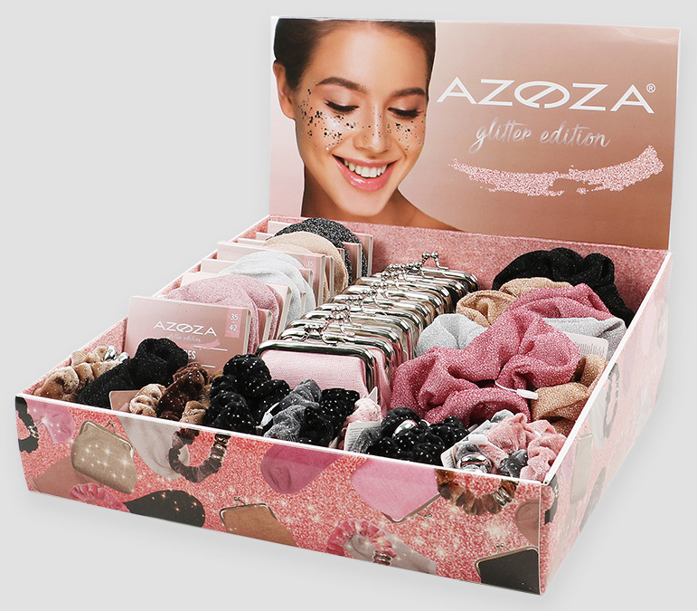 Haar/Socken/Börse-Sortiment "Glitter", 4 Ass. 48er T-Dsp.