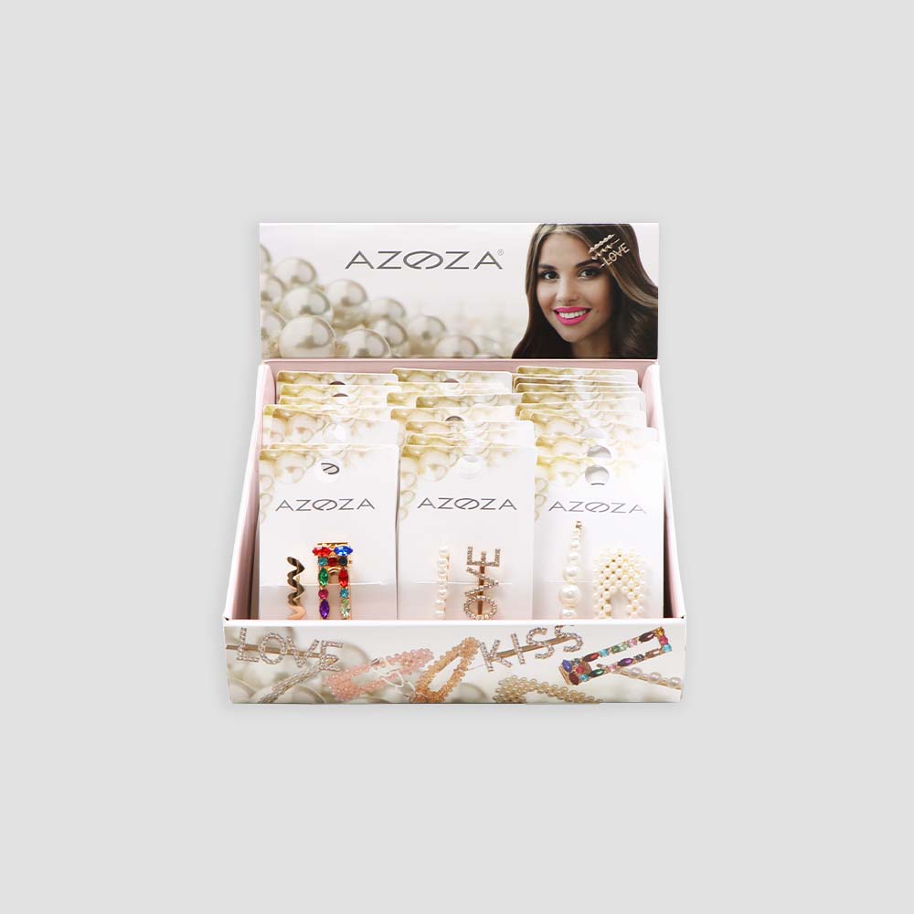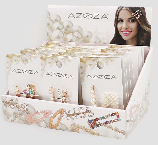 Haarschieber-Spange Sortiment "Perlen/Strass", 4 Ass. 36er T-Dsp.