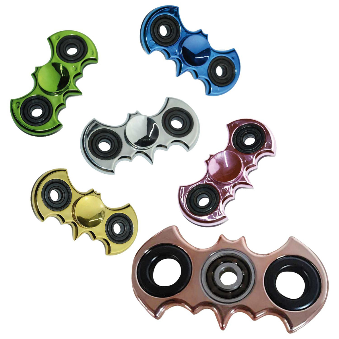 Fidget Hand Spinner Anti Stress 7,5x7,5 BAT Look Metallic farben sort. Einzeln Verpackung