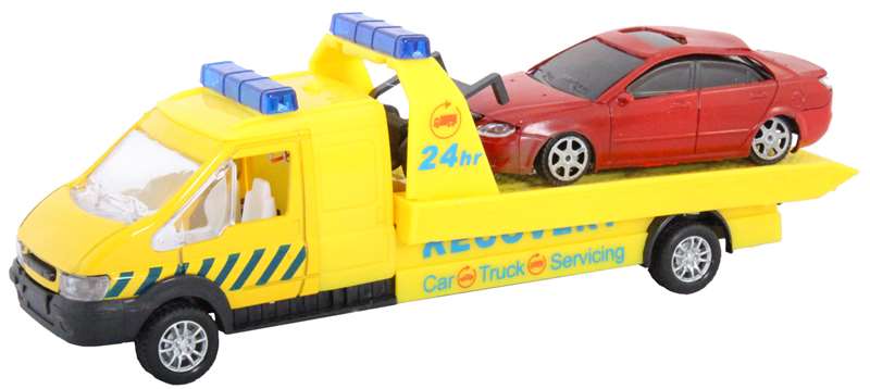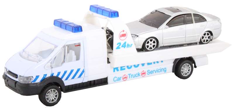 Abschleppwagen Metall mit PKW Licht&Sound 1:48 sort. ca.25x10x7cm einzelsichtbox