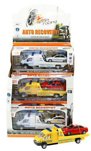 VE:12 Abschleppwagen Metall mit PKW Licht&Sound 1:48 sort. ca.25x10x7cm einzelsichtbox&Dsp