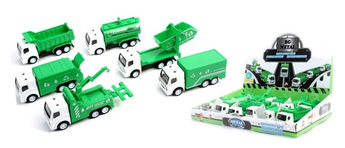 Müllwagen Metall mit Rückzug ca.10cm 12er T-Dsp.