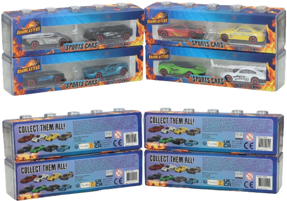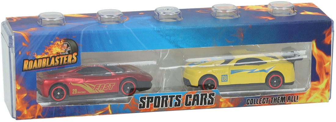 Roadblaster Sportwagen ca. 7cm je Set 2 Autos in stapelbarer Showbox 4/s