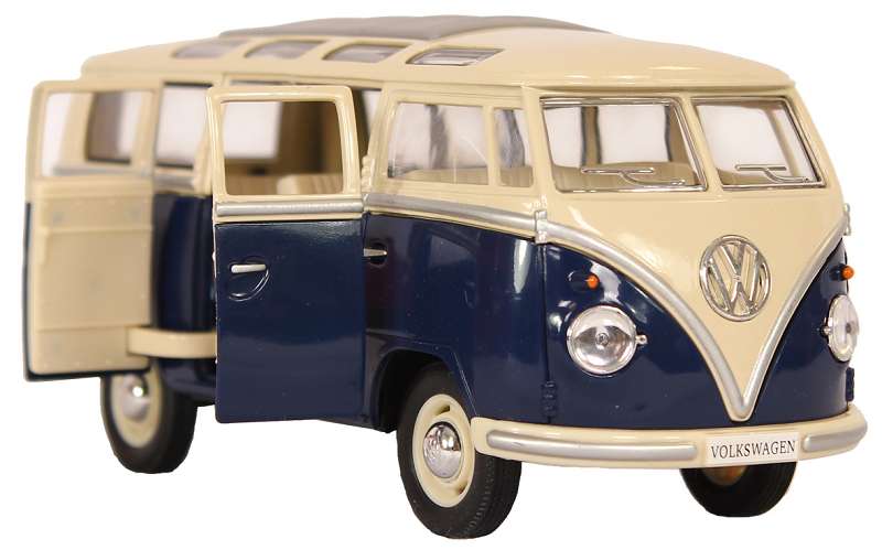 VW Bus T1 Classic/Dachfenster aus Bauj. 1967 1:24 3-farben Metall sort. im Dsp.