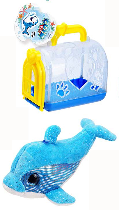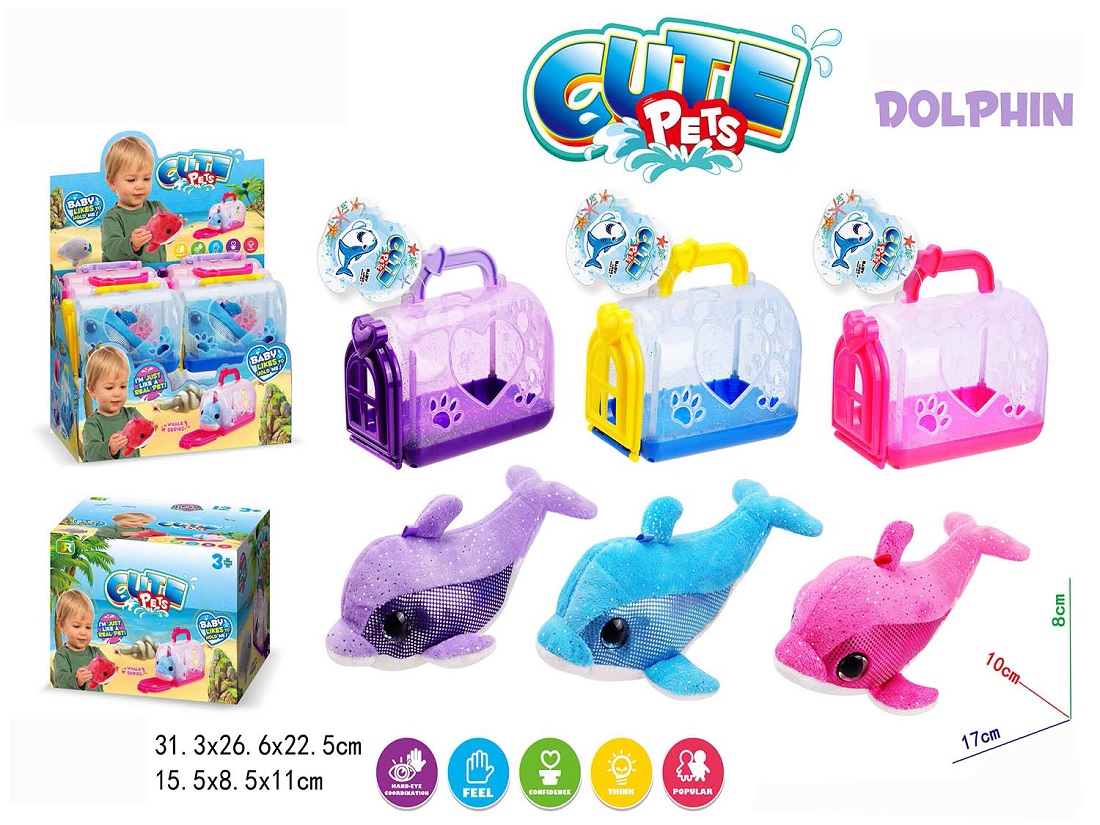 Tier Trage Korb mit Plüschtier Delphin ca. 15,5x8,5x11cm 12er T-Dsp.