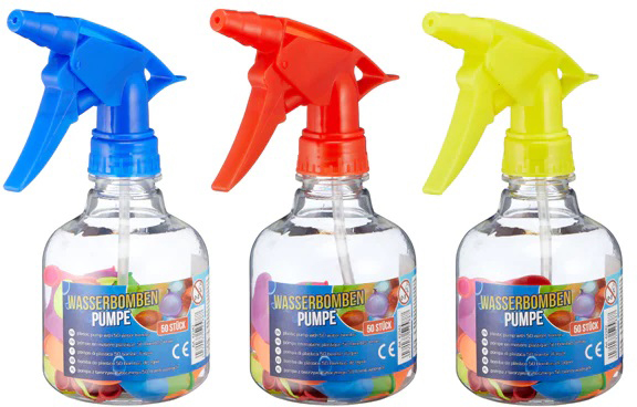 Wasserbomben-Pumpe inkl. 50 bunten Wasserbomben 3/s ca. 17cm (Blau, Rot, Gelb) P