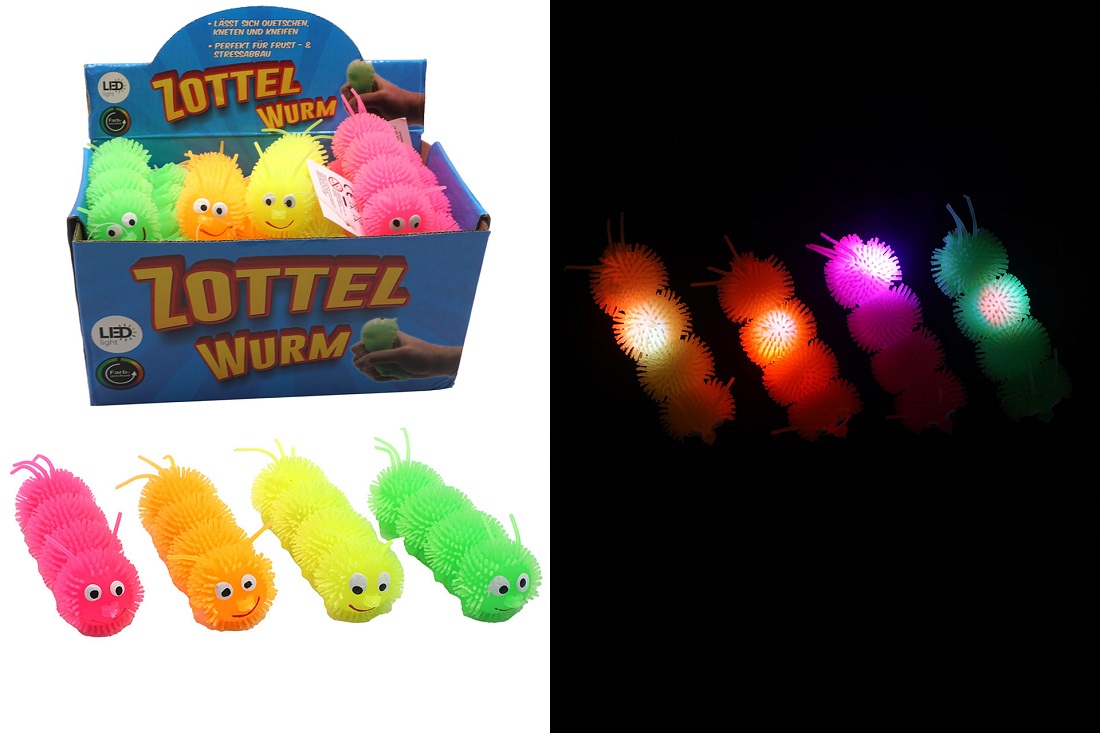 Anti Stress Zottel Wurm leuchtend ca. 12cm 4/s in 24er T-Dsp.