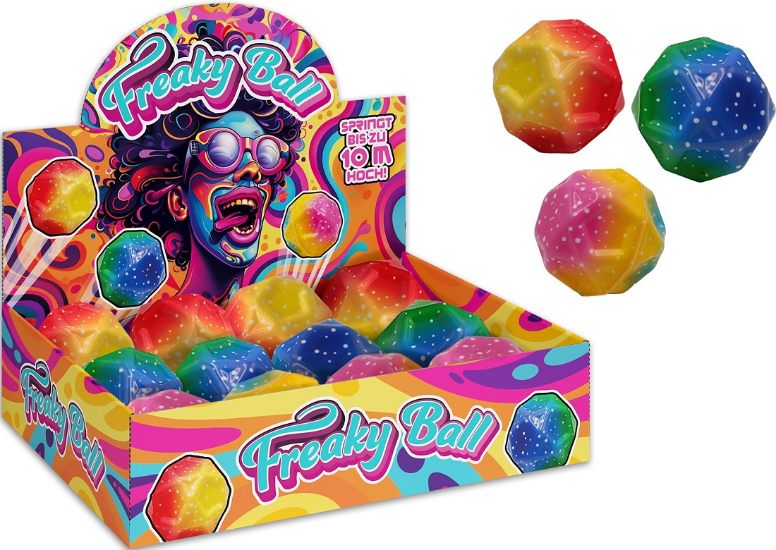 Bouncy Ball "Freaky" Ø6cm 3/s im 12er T-Dsp. (3 versch. Farbverläufe)
