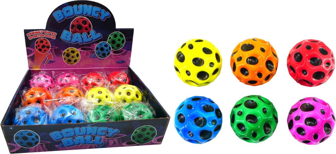 Bouncy Ball "Weltraum" Ø6cm 6/s im 12er T-Dsp. (Gelb, Orange, Rot, Blau, Grün, Pink)