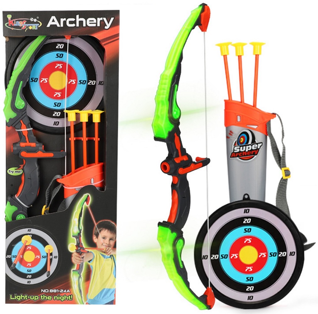 Pfeil und Bogen leuchtend Archery Set mit je 3 Pfeilen im Köcher und Zielscheibe