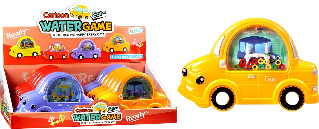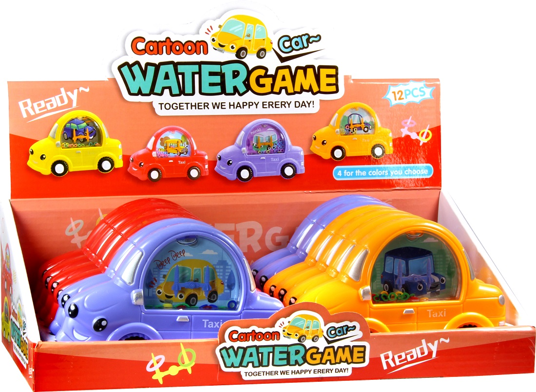 Watergame Cartoon Car Geschicklichkeits-/Wasserspiel 3/s (Lila, Rot, Orange) in 12er T-Dsp.