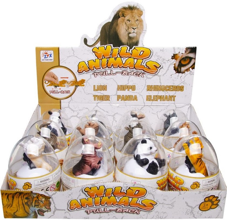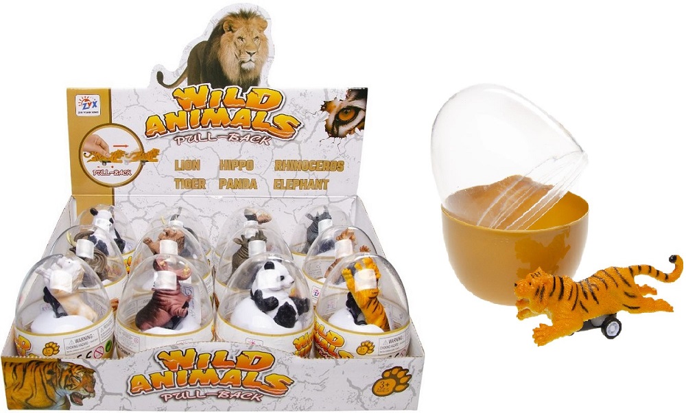 Ü-Ei Suprise WildTiere auf rädern mit rückziehmotor 12/s - 11×8cm 12er T-Dsp.