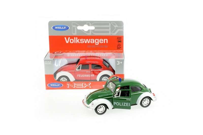 Welly Volkswagen Beetle Polizei&Feuerwehr, einzeln im Klarsichtkarton