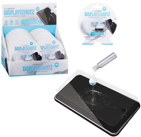 Flüssiger Displayschutz "Nano" je 1ml für Glasoberflächen von Smartphones in 24er T-Dsp.