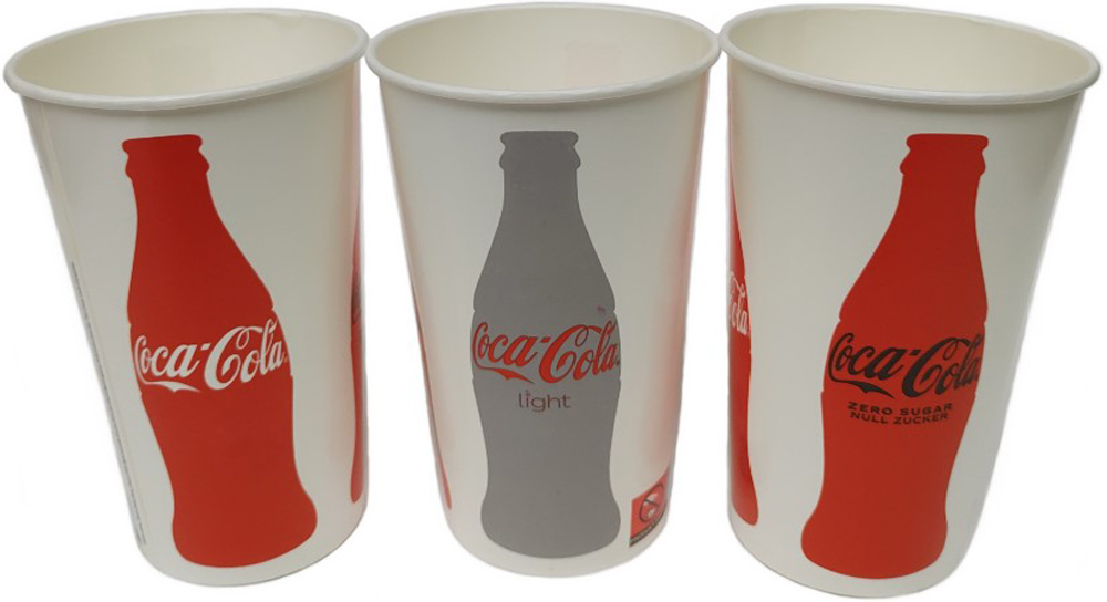Hartpapier Becher 400ml "Coca Cola" Ø 90mm PE beschichtet 50 Stk. in Beutel