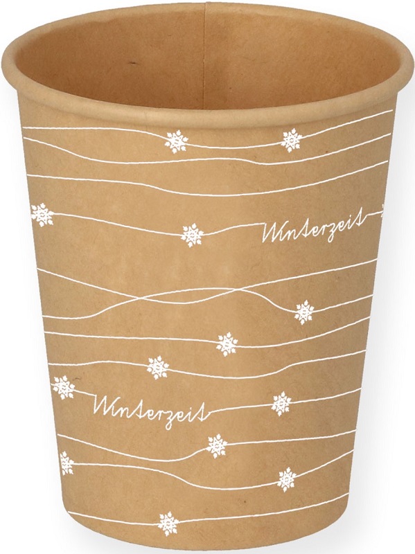 Hartpapierbecher 200ml für Heißgetränke "Winterzeit" mit Schneeflocken (8oz / mm