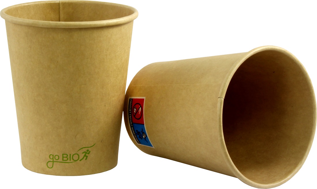 Hartpapierbecher Coffe to Go 200ml für Heißgetränke "go Bio" 1-wandig braun PE-b