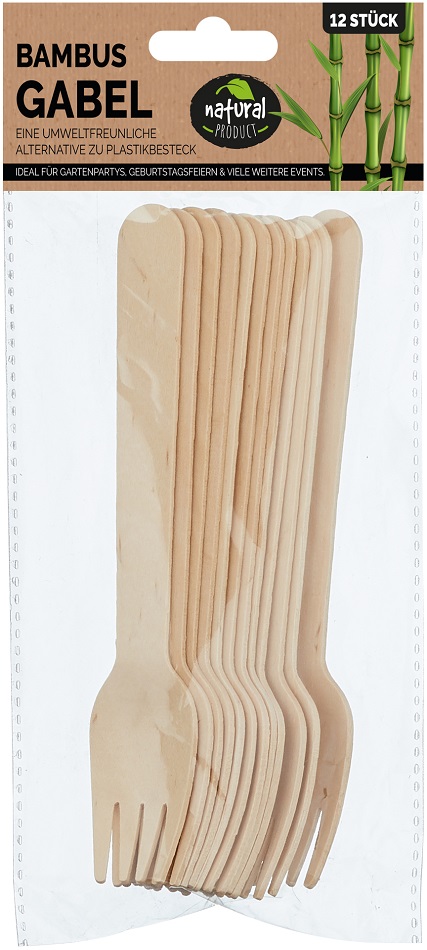 Party Besteck Gabel aus Bambus ca. 16cm 12er Set mit Headerkarte